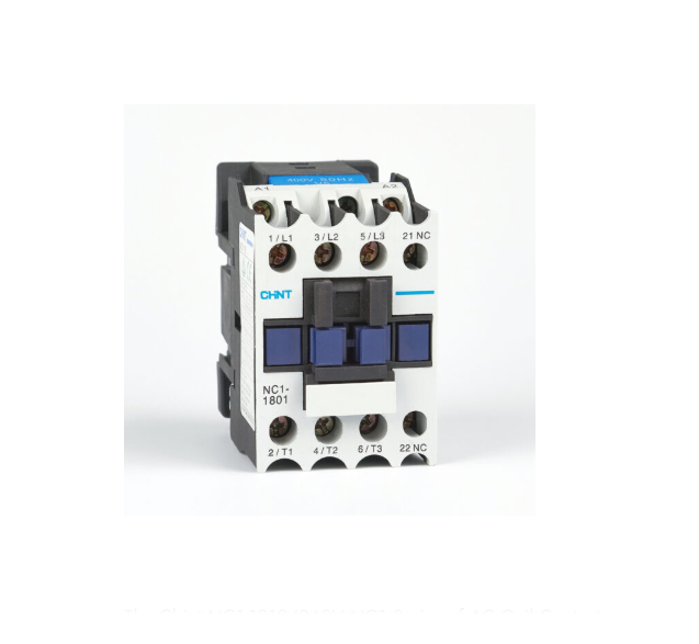 The Chint NC1-1210/240V NC1 Series of AC Coil Contactors are used in heavy duty industrial applications, mainly used in remote motor control components. The NC1-1210 is a 240V 5.50KW 3 main and 1 auxiliary contactor. AC1 – 20A. AC3 – 12A. The Chint Contactors are Din rail mountable or fitted with holes. Motor Control: Ideal for controlling three-phase motors in industrial and commercial settings.