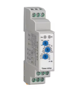 The CNTD CDT6-ST is a miniature star-delta timer relay used to control the switching between the star and delta configurations of a three-phase motor starter. This allows for a smooth and reduced current starting of the motor.